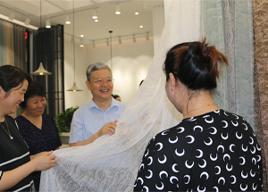 中國紡織工業(yè)聯(lián)合會(huì )原會(huì )長(cháng)杜鈺洲、中國紡織品商業(yè)協(xié)會(huì )副會(huì )長(cháng)兼秘書(shū)長(cháng)雷利民;浙江省商貿業(yè)聯(lián)合會(huì )會(huì )長(cháng)隋劍光等參觀(guān)家紡城